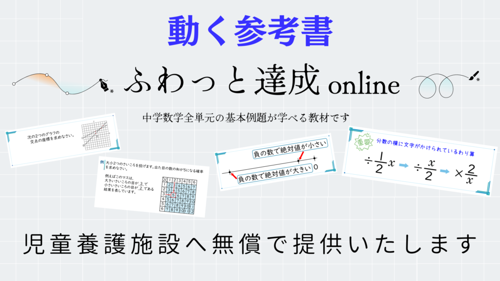 佳学舎は、西村博之(ひろゆき)さんによる、児童養護施設にPCを無償で配ろうプロジェクトに賛同し、希望する児童養護施設へ向けて、デジタル教材「ふわっと達成オンライン版」を無償提供いたします。